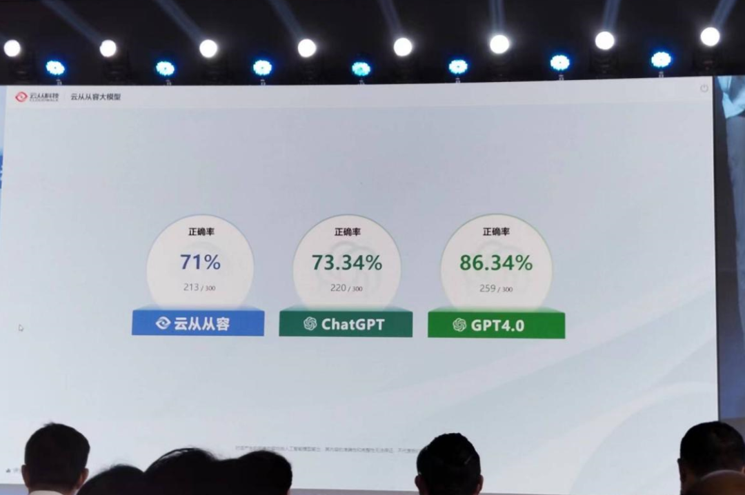云从科技过往测试结果显示,在同样300道考题的解答中,从容大模型、GPT3.5和GPT4.0三者的正确率分别为71%、73.34%和86.34%。云从科技董事长周曦坦言,GPT4.0在GPT3.5的基础上有非常明显的优化升级,其水平明显高于从容大模型。“云从在这个方向上的路还很长,还有很多值得学习的内容,但我们肯定还要坚持不懈地在这个方向做下去。”