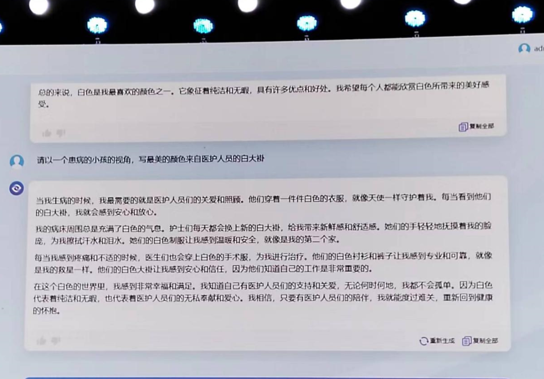 在对话问答的功能演示中,从容大模型已经具备了当前大多数大模型产品所支持的文章生成、代码编辑、俗语解释等能力,面对技术人员现场给出的中考作文题以及编程的测试,从容大模型也能基本满足创作的需求。值得一提的是,从容大模型在回答问题的同时,还能够给出参考资料来源的标注,从而解决了目前公众对于生成式人工智能参考内容来源不明的疑问。