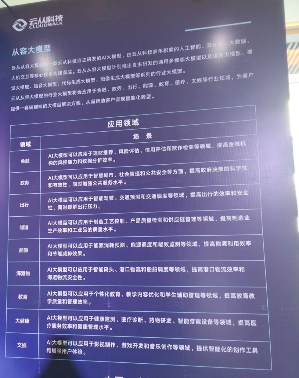 具体到商业化落地,周曦表示,从容大模型将会应用于金融、政务、出行、能源、教育、医疗、文娱等行业领域,为客户提供一套端到端的大模型解决方案,从而帮助客户实现智能化转型。