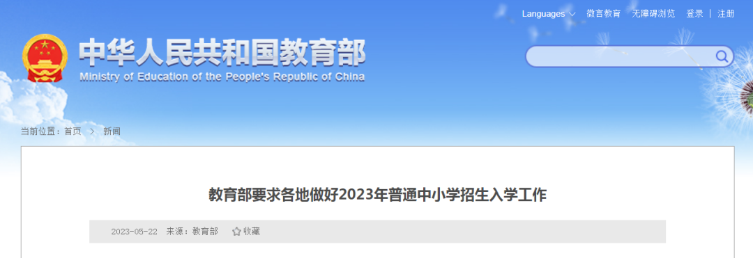 据教育部网站22日消息,为深入贯彻落实党的二十大精神,促进教育公平,办好人民满意的基础教育,近日,教育部办公厅印发《关于做好2023年普通中小学招生入学工作的通知》(以下简称《通知》),对中小学招生入学工作作出部署。