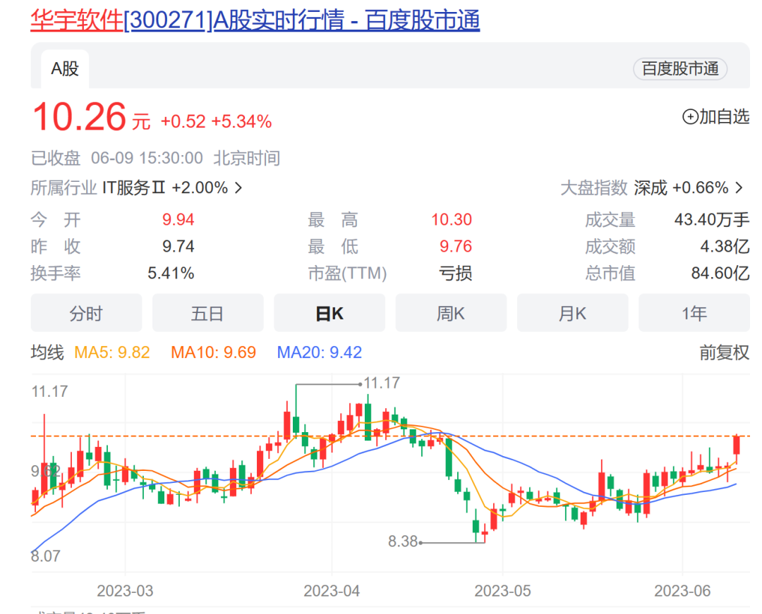 上周五(6月9日)午后,华宇软件股价震荡走高,截至收盘涨超5%。