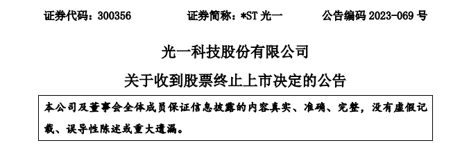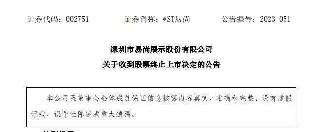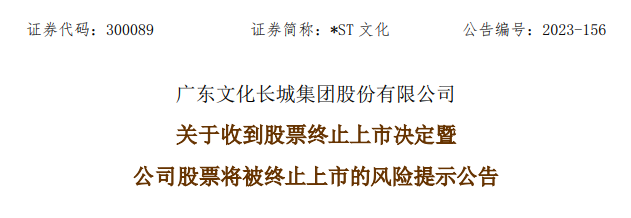 6月12日晚间,又有3家A股公司接交易所“退市令”。*ST文化、*ST易尚和*ST光一被深交所决定终止公司股票上市。