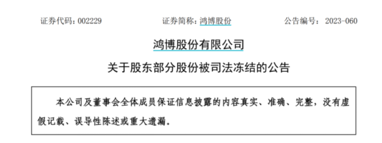 公告显示,本次遭司法冻结的股份冻结期限为3年,解除日期为2026年6月12日。对于前述股权被司法冻结的原因,鸿博股份并未在公告中披露。公司表示,冻结股份不涉及业绩补偿义务,不会对公司经营及治理产生重大直接影响,亦不会导致实控人发生变更。