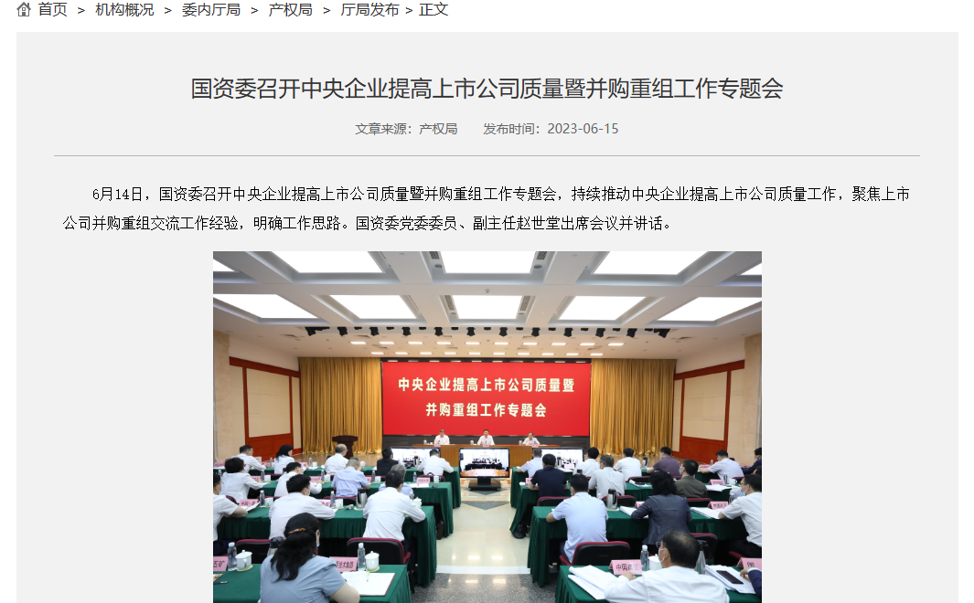 本次召开的会议聚焦持续推动中央企业提高上市公司质量工作,聚焦上市公司并购重组交流工作经验,明确工作思路。会议指出,近年来中央企业以资本市场深化改革为契机,主动运用并购重组手段促进资产和业务布局优化完善,提升国有资源运营配置效率,工作取得积极成效。