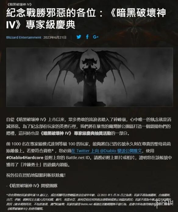 据悉,为纪念《暗黑破坏神IV》上线,暴雪官方近日举行了一个挑战活动。活动规定,在游戏内前1000名在专家级模式达到等级100的玩家,能够将自己的名号永久刻在游戏中的“圣母莉莉丝雕像”上。