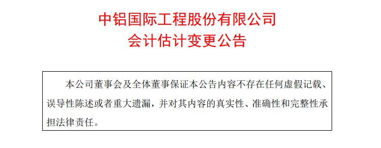 继审计机构变更后,中铝国际(601068)会计估计也发生变动。