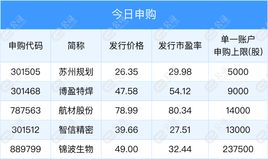 值得一提的是,今日5只新股齐发,并迎来了北交所定价最高的新股。锦波生物采用直接定价方式,发行价格为49元/股,发行市盈率为32.44倍。这一发行价超过了此前翰博高新48.47元/股的发行价,使锦波生物成为北交所最高发行价新股。