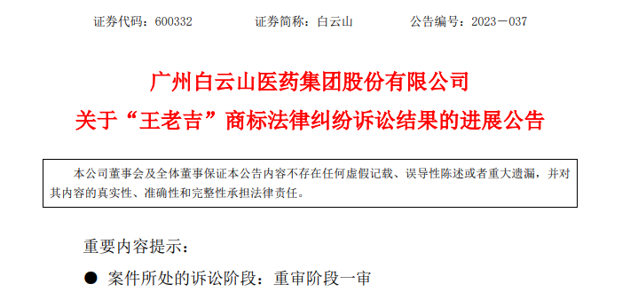 不过,当事双方均不服此判决并提起上诉。2019年6月17日,最高人民法院作出民事裁定,认定广药集团提供的主要证据在“证据内容与证据形式上均存在重大缺陷,不能作为认定本案事实的依据”,撤销广东高院(2014)粤高法民三初字第1号民事判决,发回广东高院重审,并要求“重新对涉案被诉侵权行为的性质及相关法律责任问题作出全面审查认定”。