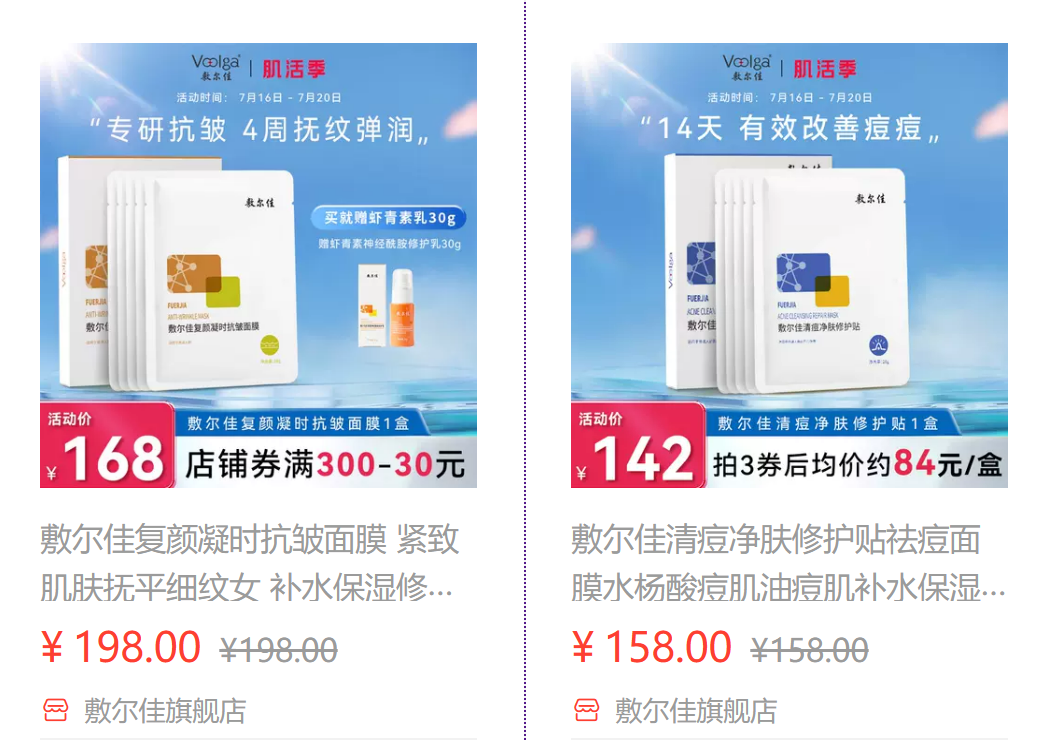7月20日启动打新的创业板新股敷尔佳,在售产品覆盖医疗器械类敷料产品和功能性护肤品,主打敷料和贴、膜类产品,并推出了水、精华及乳液、喷雾、冻干粉等其他形态产品。