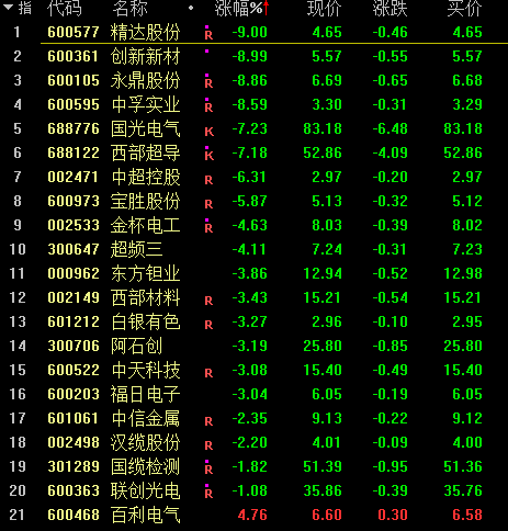 精达股份、中孚实业开盘一字跌停,国缆检测、永鼎股份、东方钽业、宝胜股份、西部超导等均大幅低开。截至发稿,西部超导跌超6%,创新新材、中孚实业跌超8%。