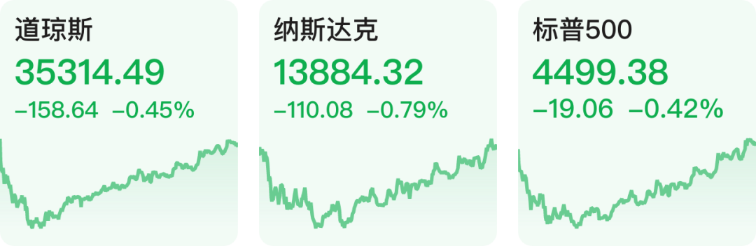 美股三大指数集体收跌,纳指跌0.79%,道指跌0.45%,标普500指数跌0.42%。大型科技股多数下跌,亚马逊、脸书、微软跌超1%,奈飞、谷歌、特斯拉小幅下跌;苹果小幅上涨。诺和诺德涨超17%,公司在官网宣布,其备受关注的III期试验“SELECT”的积极结果超出预期。礼来涨近15%,市值超越强生重新成为全球市值最高的制药上市公司。热门中概股普跌,纳斯达克中国金龙指数跌2.37%。理想汽车跌超8%,小鹏汽车、蔚来跌超5%,富途控股跌超3%,满帮、哔哩哔哩、阿里巴巴、京东、拼多多、百度跌超2%。