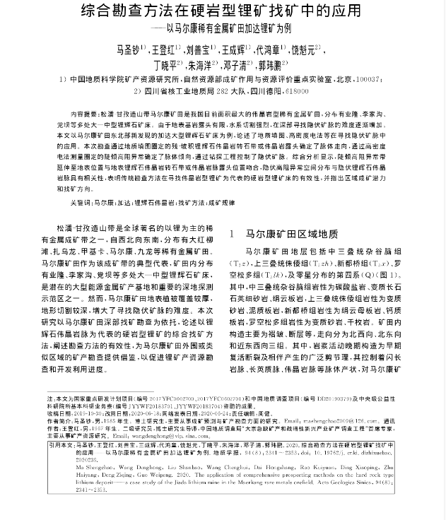 公开资料显示,中国地质科学院马圣钞、王登红等学者在《综合勘查方法在硬岩型锂矿找矿中的应用——以马尔康稀有金属矿田加达锂矿为例》一文中也提到,马尔康矿田作为该成矿带的典型代表,矿田内分布有业隆、李家沟、党坝等多处大—中型锂辉石矿床,是潜在的大型能源金属矿产基地和重要的深地探测示范区之一。