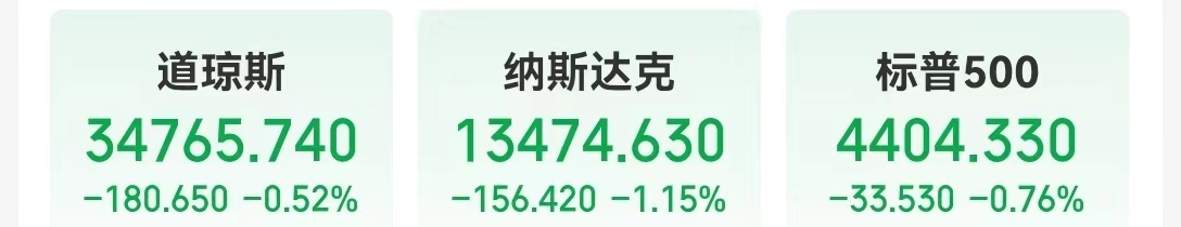 二级市场上,美股三大指数集体收跌,纳指跌1.15%,标普500指数跌0.76%,道指跌0.52%。