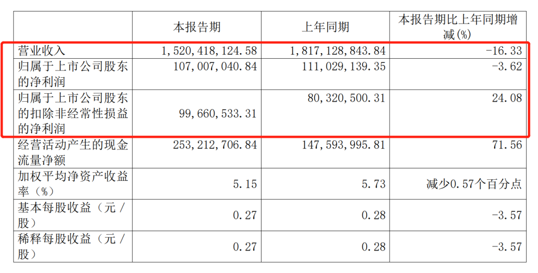 财报显示,2023年上半年,杭州热电实现营业收入15.2亿元,同比减少16.33%;归属于上市公司股东的净利润1.07亿元,同比减少3.62%;扣非后净利润9966万元,同比增长24.08%;基本每股收益0.27元。