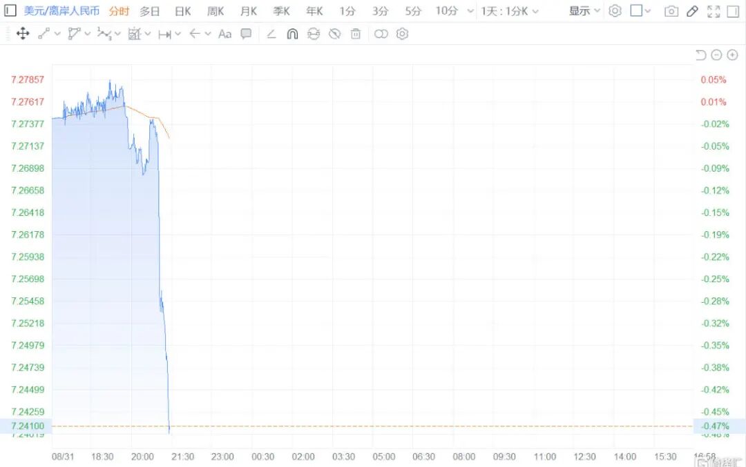 离岸人民币兑美元持续走高,升破7.24关口,日内涨超350个基点。