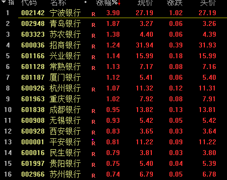 受诸多重磅消息影响,银行股早间大部分高开,宁波银行、招商银行、常熟银行等涨幅居前。