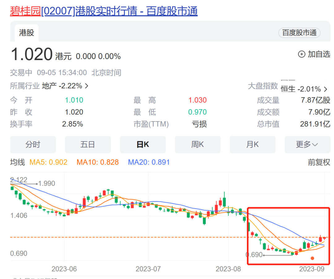 二级市场方面,碧桂园股价自8月23日触及0.69港元的低位以来,在8个交易日内已经反弹超过40%。