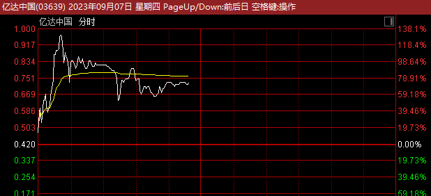 续周一涨11.11%,周二停牌,周三暴涨320%后,今日早间,亿达中国再度飙升逾138%,3个交易日由此前0.09港元,飙升至最高1港元,暴涨超10倍。