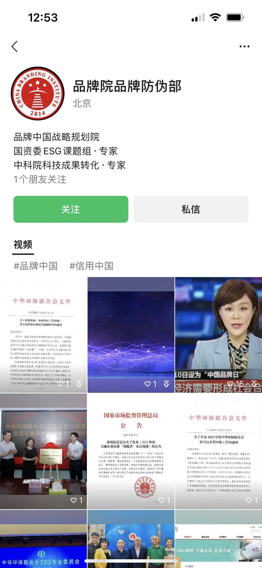 9月14日上午,证券时报·e公司记者拨打了李全营的手机号码,而电话中传来语音秘书的留言播报。记者在微信上搜索发现,此号码关联的微信号的昵称为“品牌中国·ESG·李全营”。微信号的个性签名为“中国科学院科技成果转化 国家双碳ESG与EOD落地”,并绑定了一个叫“品牌院品牌防伪部”的视频号。