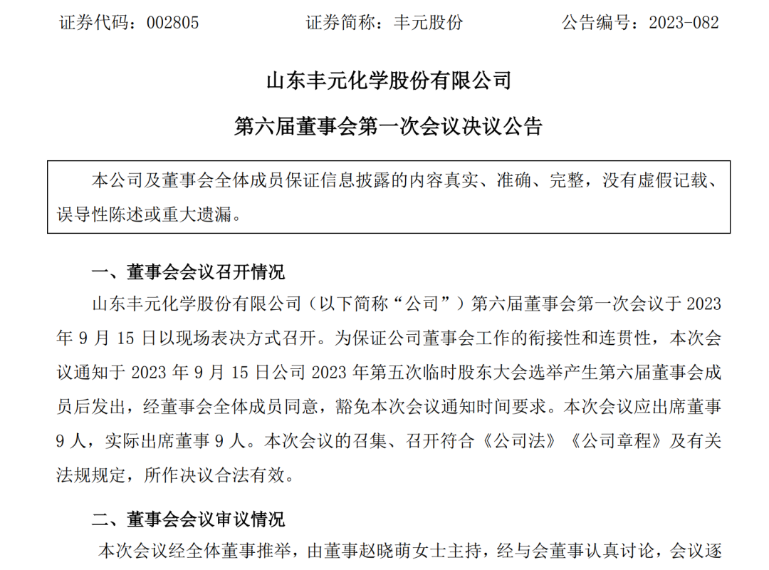 赵晓萌掌舵丰元股份倒也在外界预期之中。此前,上市公司于8月末宣布董事会换届选举,时任公司董事长的赵光辉并没有出现在董事候选人名单,由其女赵晓萌“取而代之”。