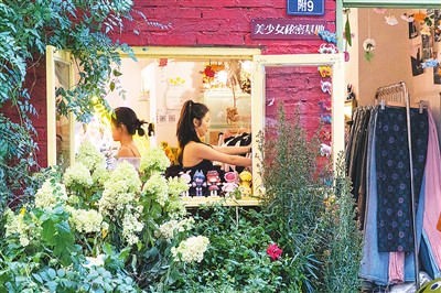 四川省成都市武侯区芳华街上,人们在一家潮流服装店内挑选商品。