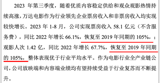 万达电影9月22日在投接待机构调研时表示,电影行业前几年受影响较大,今年以来在国家政策的支持下率先复苏,多个档期表现亮眼,特别是暑期档票房表现超出预期,刷新影史记录。影片的过硬质量和高话题度都在刺激市场需求逐步恢复,电影行业已经确定性复苏,并且将延续繁荣向好态势。