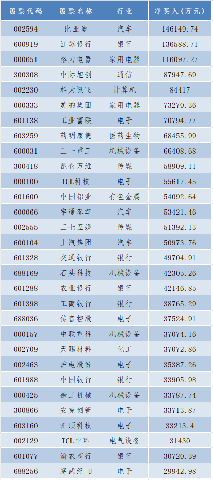 本周,北上资金再度净卖出逾175亿元,其中沪股通净卖出约81亿元,深股通净卖出94亿元。整个9月,北上资金净卖出约375亿元,环比8月资金流出势头有所缓解。