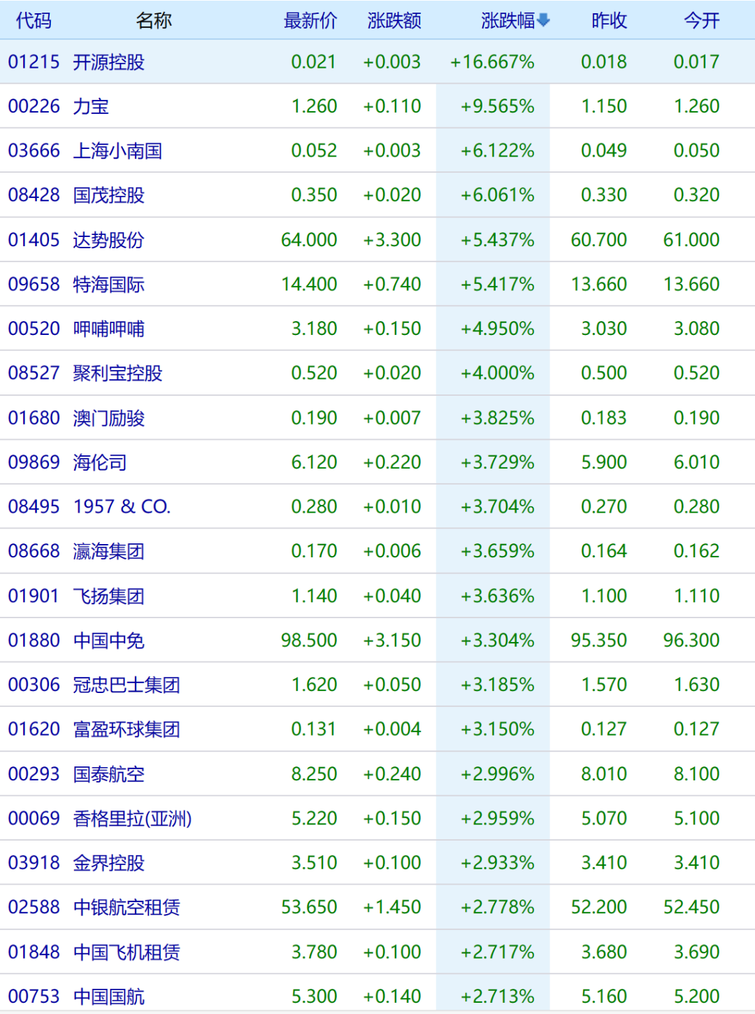 与此同时,受国庆假期旅游热的影响,港股文旅板块今日收获了大面积上涨。