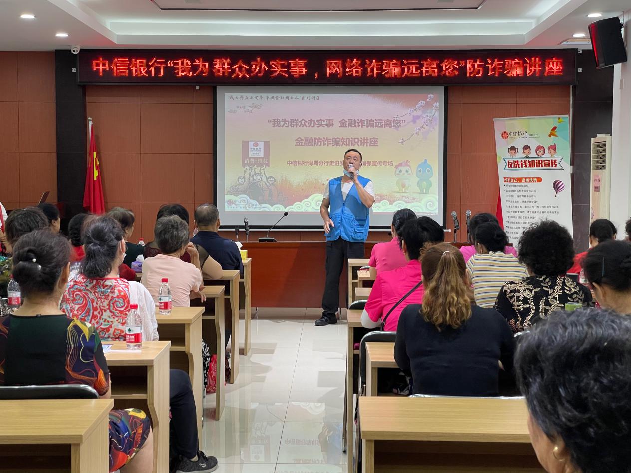 为积极扩大反诈宣传覆盖面,使群众防范意识纵深推进,中信银行深圳分行创新开展社区反诈骗宣教活动,紧密围绕社区居民的需求组织“进社区、走村镇、入村组”,与群众面对面开展“零距离”反电信诈骗宣传。2021年以来,该行已开展15场反诈宣传活动,宣传范围覆盖全辖多个社区与街道,线上线下发放反诈宣传材料10万余份。