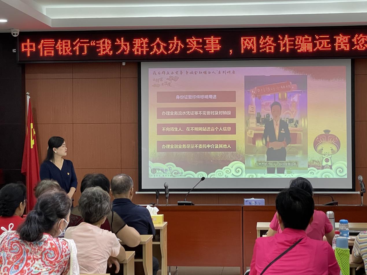 中信银行深圳分行精准聚焦老年群体,全力保障老年人财产安全。微信上的防诈骗朋友圈、沟通时的温馨提示语、社区街道的防诈骗讲座……从被动收听逐渐转变为主动咨询,通过形式多样的反诈骗宣传活动,老年客户反诈意识有效提升。