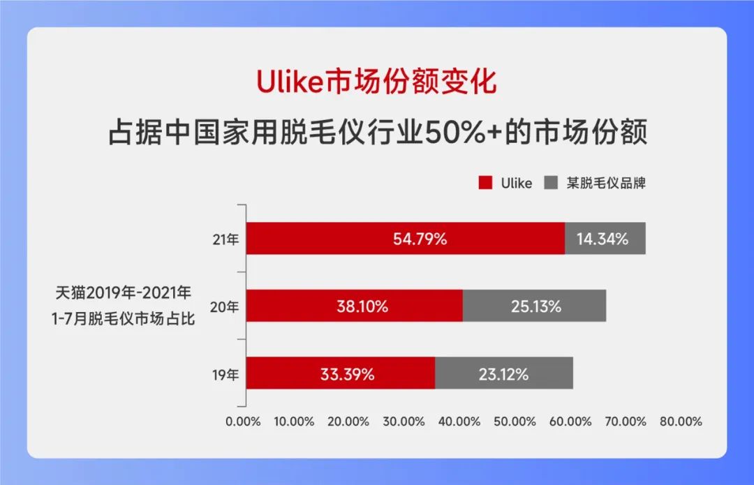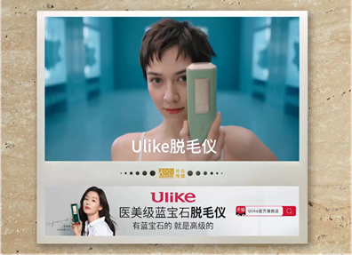 Ulike脱毛仪是一个专注家用光学脱毛仪领域的领导品牌,家用冰点脱毛仪的开创者,但是2021年以前,这个品牌基本没有在品牌侧的投放,是一个典型依靠流量驱动的电商品牌。