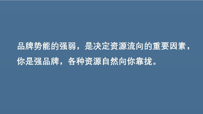 而品牌势能的强弱,是决定资源流向的重要因素,你是强品牌,各种资源自然向你靠拢。