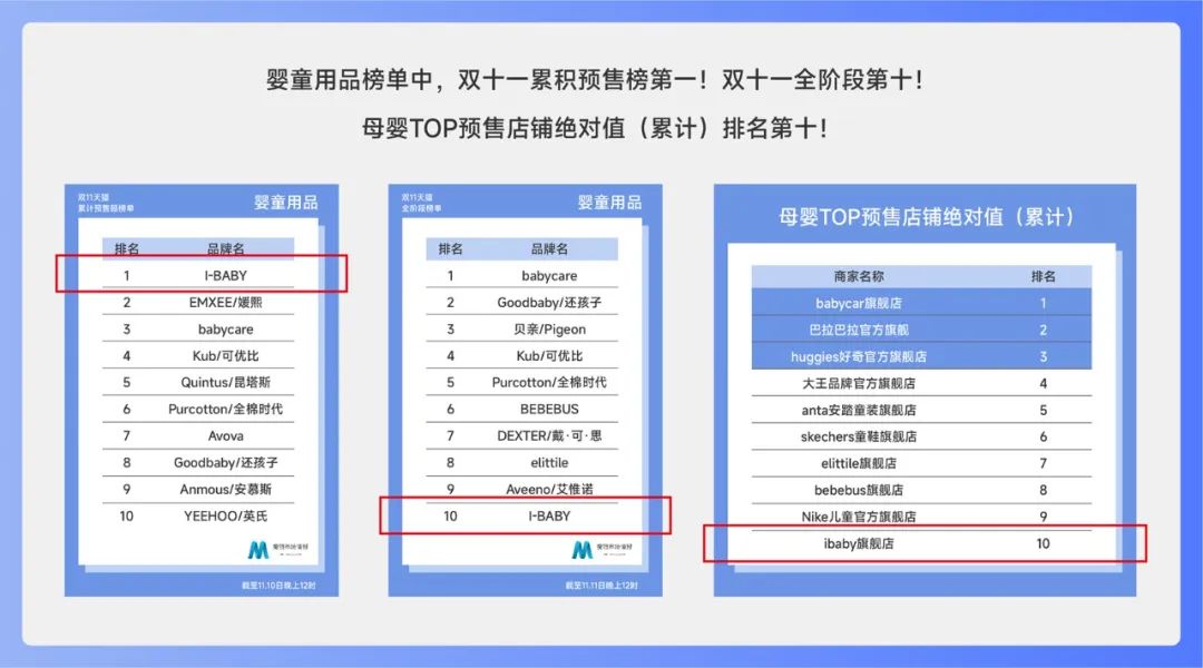 这些头部资源会优选ibaby,很重要的原因就是ibaby开创恒温睡袋,这个品牌差异点已通过分众的引爆深入人心,数据好、翻车的可能性低。而在李佳琦等大主播的助攻下,ibaby在天猫双11首日,就成为睡袋类目销量TOP1,单日销量突破10万条,同比增长500%;而在整个双11销售突破20万条;其全国销量在8-11月突破40万条,仅四个月销售额过亿,实现了品牌体量的进阶。