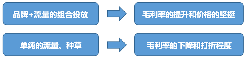不仅如此,品牌+流量的组合投放,通常还会带来毛利率的提升和价格的坚挺,而单纯的流量、种草等打法,一定带来的是毛利率的下降和打折程度(也就是实际成交价格的下降)。