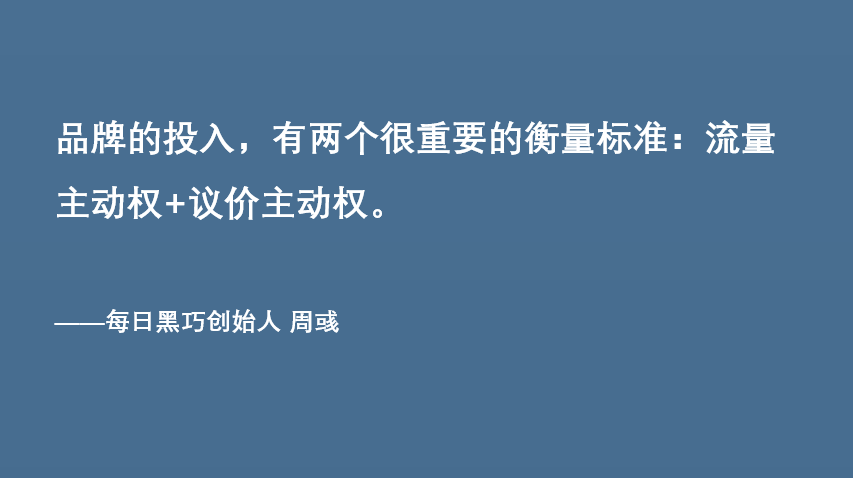 每日黑巧的创始人周彧认为:品牌的投入,有两个很重要的衡量标准:流量主动权+议价主动权。