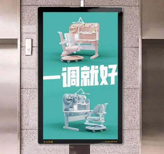 又比如一个儿童家居品牌——黑白调。2021年7月起,黑白调主打开学季,利用分众在全国主流城市高频引爆。