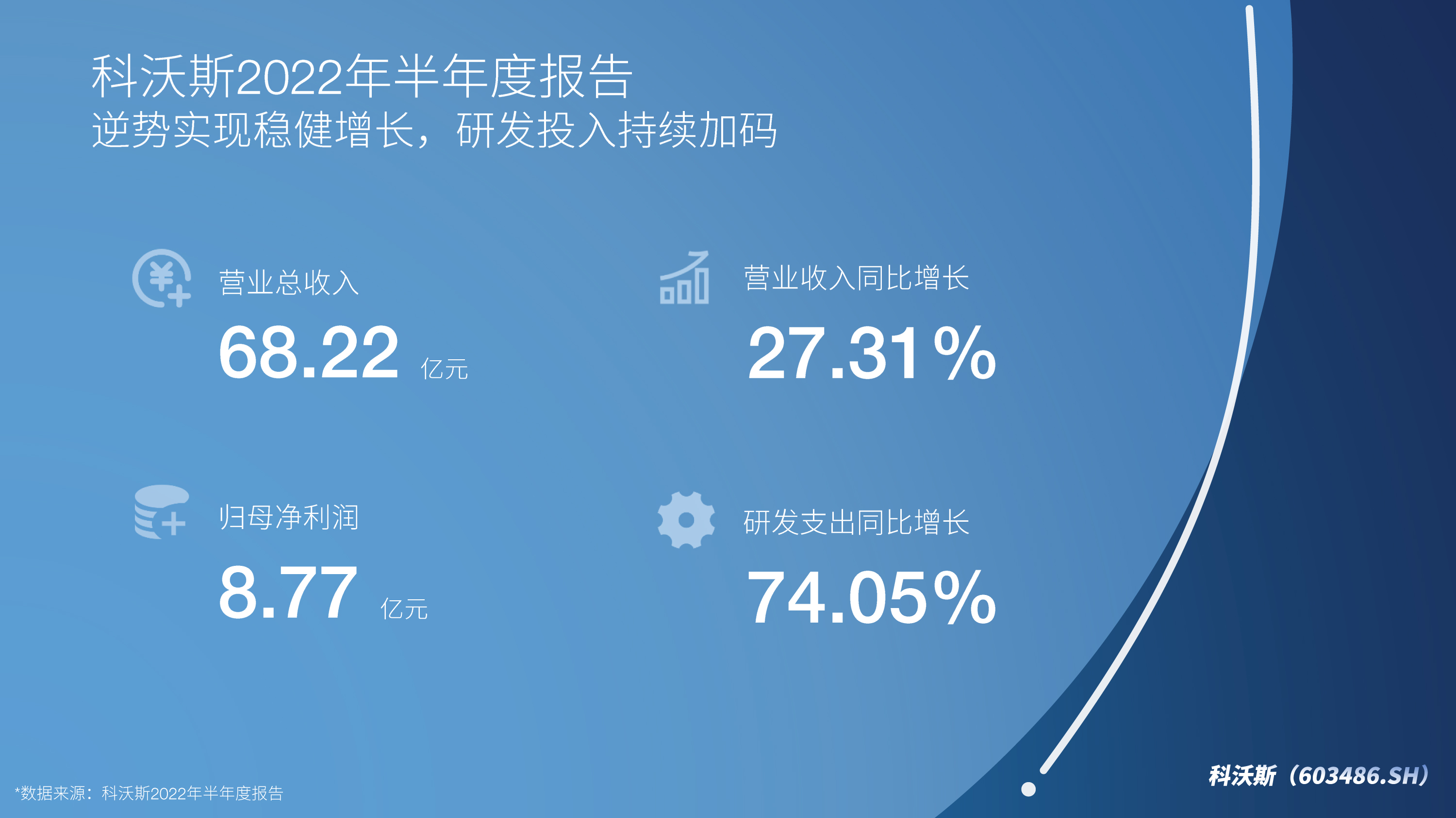 2022年8月26日晚间,科沃斯(603486.SH)发布2022年半年报,报告显示,科沃斯集团2022年上半年实现营业收入68.22亿元,同比增长27.31%;归母净利润8.77亿元,同比增长3.15%;剔除股份支付费用影响后净利润10.22亿元,同比增长14.72%。