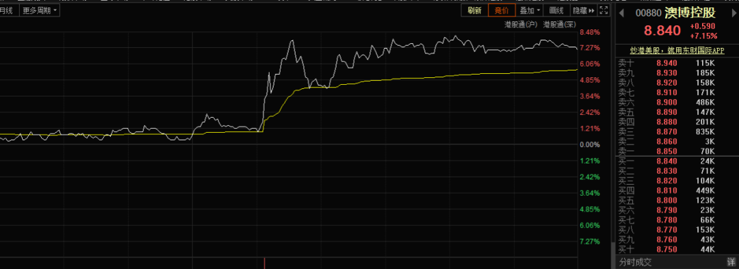 澳博控股也超过7%。