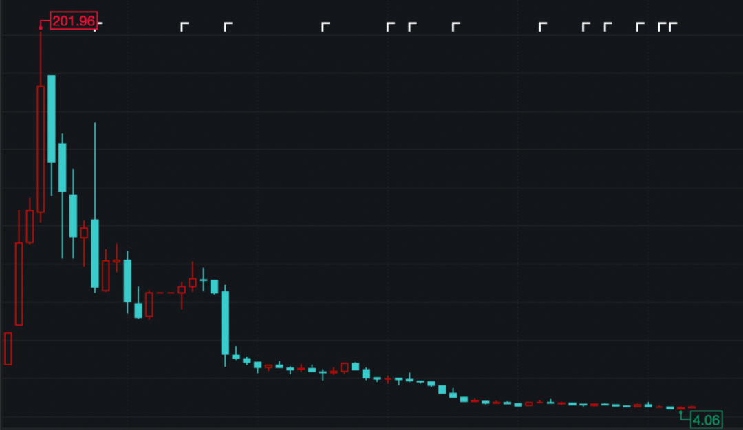 自2015年盘中创下201.96元/股之后,唐德影视的股价开始进入下跌通道。2020年4月,其股价最低跌至4.06元/股。