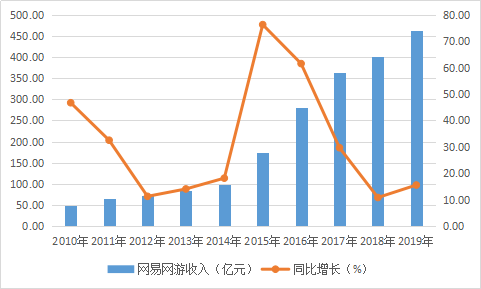 图3:网易网游2010-2019年收入变化
