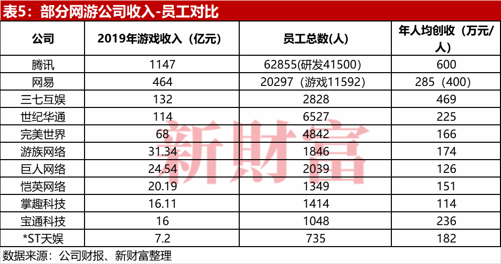 如果用总收入和总人数比来测算人效,则腾讯人效为600万元/人,腾讯游戏部门员工人效应该高于600万元。网易总人效为285万元,大约为腾讯一半。