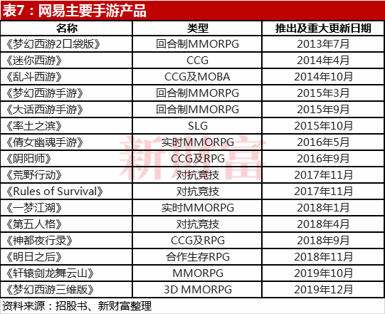 老IP经过挖掘,从端游转为手游,无疑是延长网游生命周期的另一种方法。网易主要自研手游就是端游转化而来,如《大话西游》、《梦幻西游》、《倩女幽魂》等(表7)。
