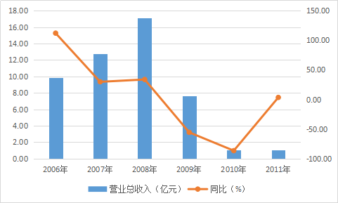 图4:九城2006-2011年营业总收入变化