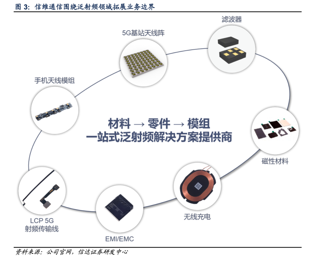 公开资料显示,信维通信是领先的一站式泛射频企业。作为国内天线行业龙头,自上市以来,聚焦射频领域,借助内生外延,持续拓展无线充电、EMI/EMC器件、连接器、射频前端器件等业务。