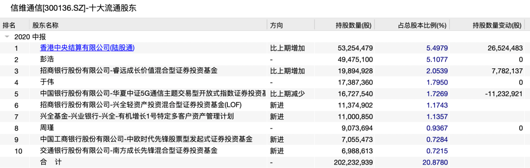 截至2020年6月末,信维通信的前十大流通股东中,有6席为公募基金,包括睿远成长价值基金,截至2020年中期,睿远成长价值基金持有1989万股,持股数较一季度末增加778万股。