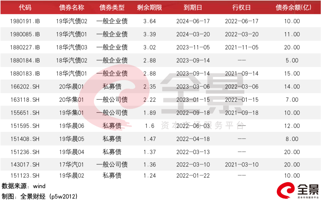 公开资料显示,“17华汽05”发行于2017年10月23日,发行规模10亿元,票面利率5.3%,期限3年,应于2020年10月23日到期兑付。当前逾期利息为5300万元。