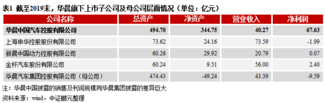 目前,华晨集团在辽宁、四川和重庆建有6家整车生产企业,2家发动机生产企业和多家零部件生产企业。同时旗下拥有4家上市公司:Brilliance Chi华晨中国(01114.HK)、申华控股(600653.SH)、金杯汽车(600609.SH)和新晨动力(01148.HK)。