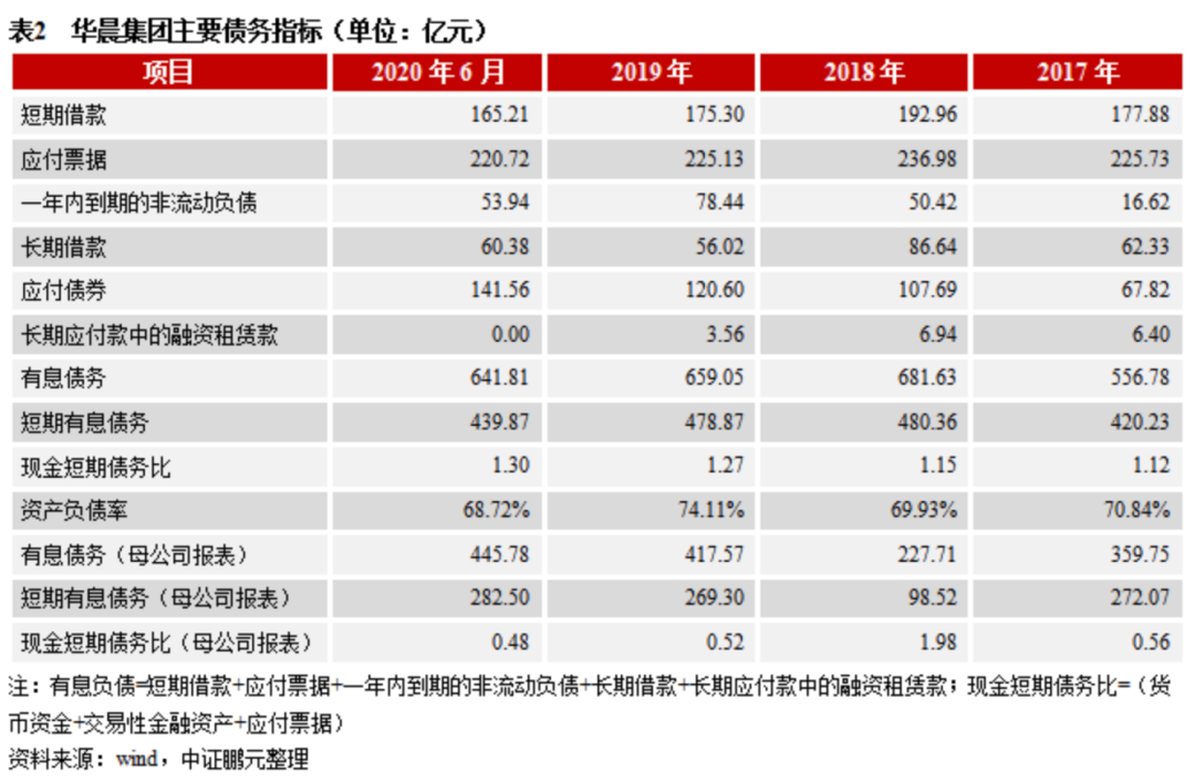 从母公司报表来看,截至2020年6月30日,该集团有息债务主要集中在母公司层面,达445.78亿元,占合并报表的69.46%,其中短期有息债务282.50亿元,现金短期债务比仅为0.48。同期内母公司货币资金仅为117.42亿元。