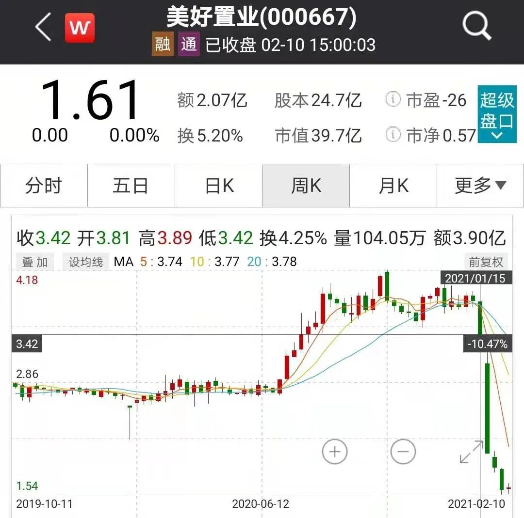从股价来看:自2021年1月15日起,美好置业股价突然断崖式下跌。1月18日,美好置业公告称“公司及控股子公司生产经营活动正常。”1月20日晚间,美好置业再次强调,公司内外部经营环境未发生重大变化,并称接到控股股东美好未来企业管理集团通知,其目前正在筹划与公司产业链相关(涉及物业服务行业或建筑行业)的重大交易事项。
