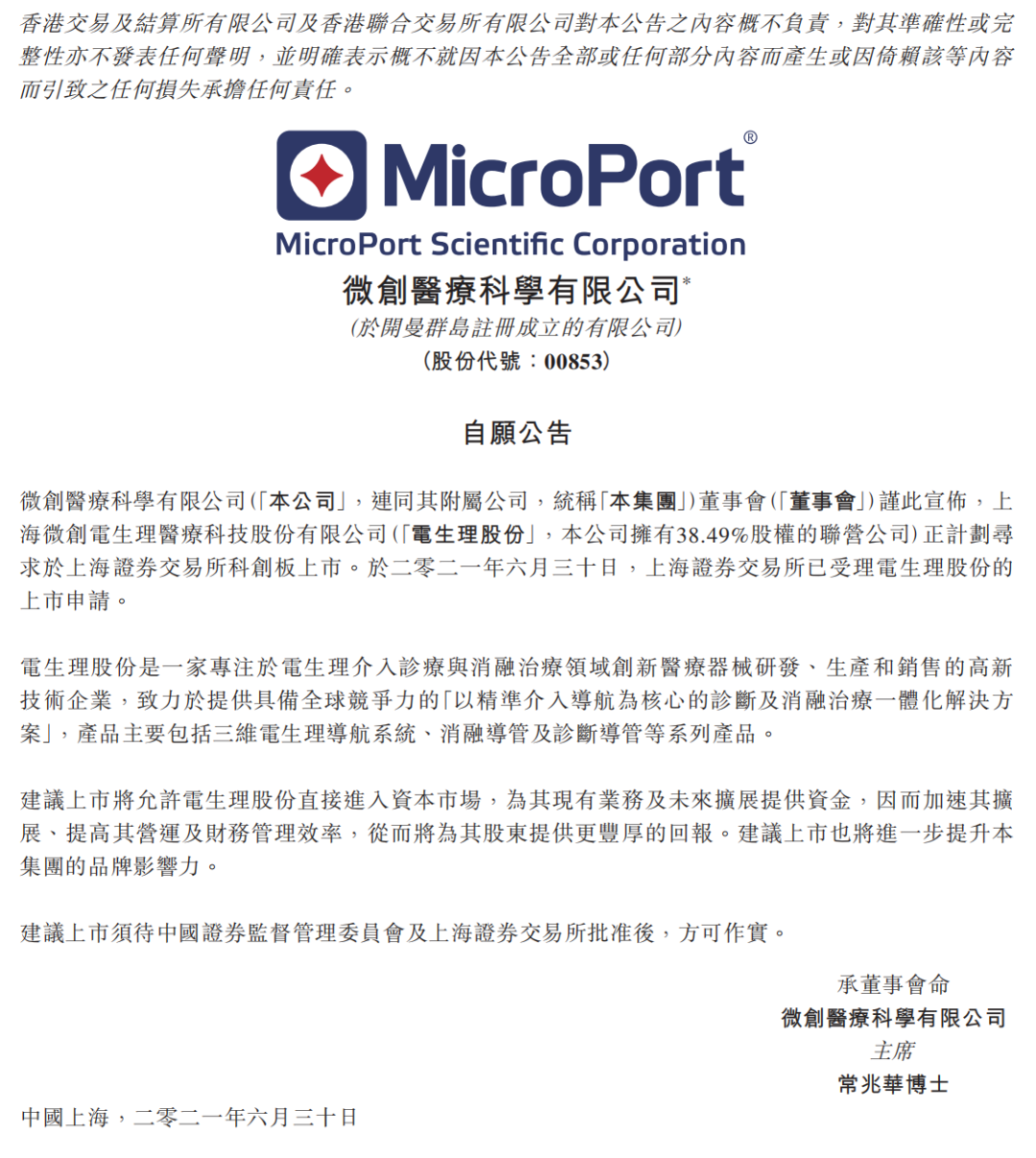 此前在2019年7月,微创医疗分拆子公司心脉医疗于科创板上市,成为H股分拆赴科创板上市的首例;随后其控股子公司心通医疗则在今年2月完成港交所同股不同权架构上市。